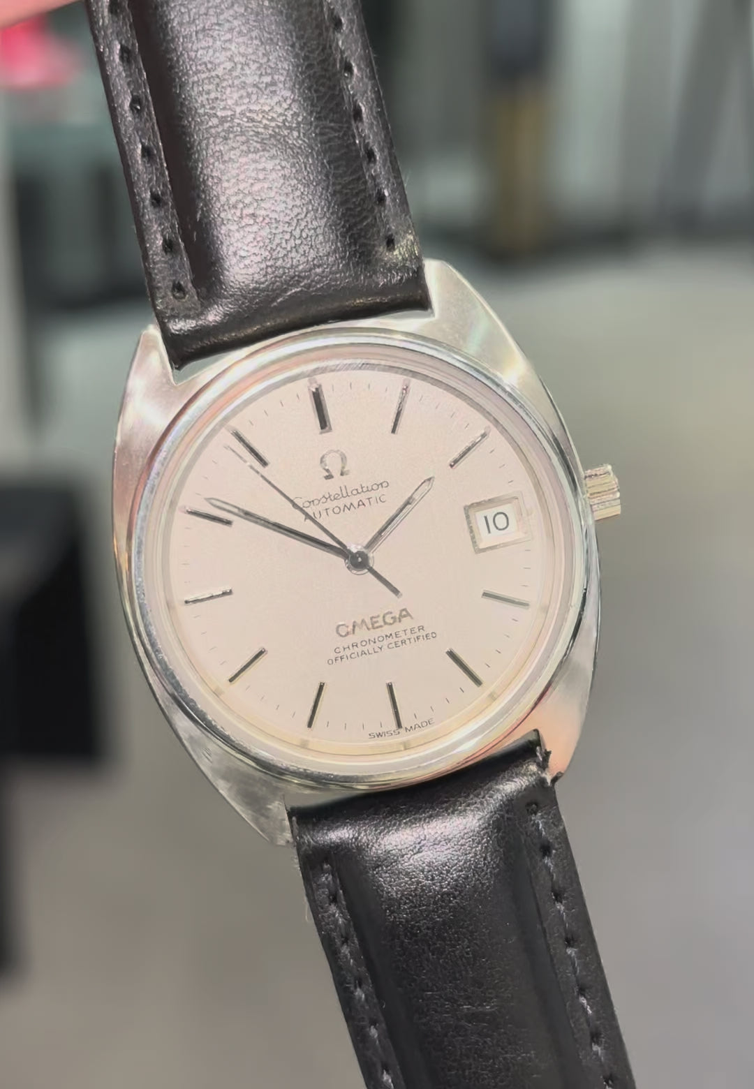 Powered by Omega’s automatic calibre 1012 movement, recently serviced and in full working order, this Constellation offers reliable performance along with timeless style. The watch is fitted to a brand new, genuine black leather strap (non-Omega) with a stainless steel buckle.